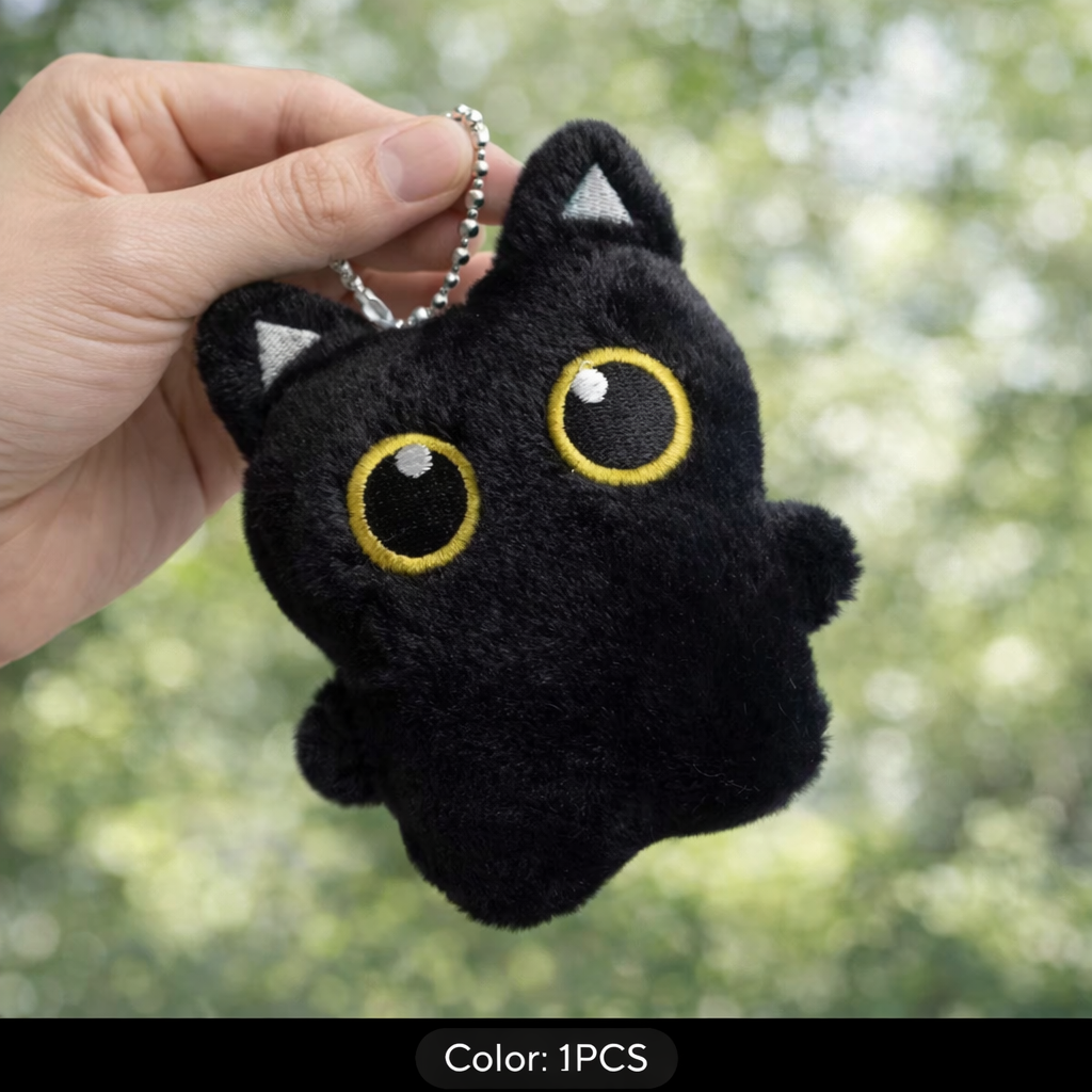 Craquez pour cette mini peluche chat noir aux grands yeux adorables đ€